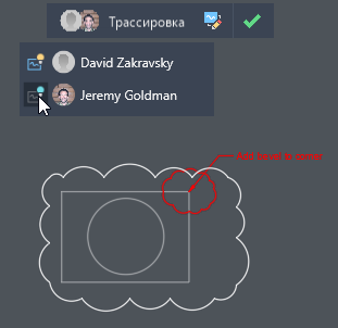 Наведите указатель на имя участника в раскрывающемся списке панели инструментов, чтобы выделить его публикацию в трассировке.