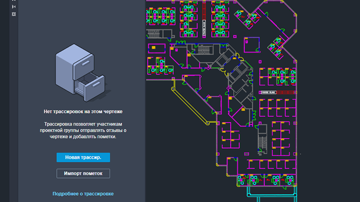 Палитра «Трассировки» обновлена для упрощения создания новой трассировки или импорта пометок в случаях, когда чертеж не содержит трассировок.