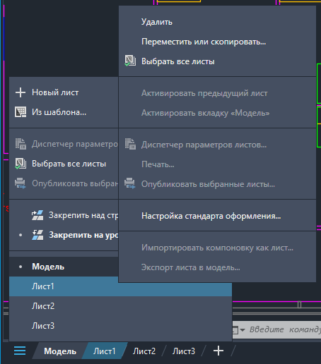 Щелкните лист правой кнопкой мыши для просмотра дополнительных параметров.