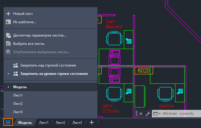 Новое меню вкладки «Лист» позволяет переключаться между листами, создавать листы на основе шаблона, публиковать листы и т. д.