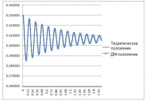Затем данное уравнение было обработано с помощью Excel, а результаты сравнили с результатами, полученными при динамическом моделировании. Результаты оказались идентичными. |
