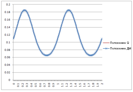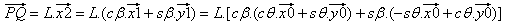 Точка Q остается на оси y0, и ее координата по оси x0 равна 0,0: |