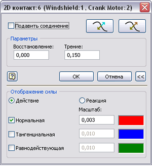 Задайте свойства для двумерного контакта и отобразите вектор силы. В обозревателе щелкните правой кнопкой мыши соединение, являющееся 2D контактом, и выберите "Свойства".