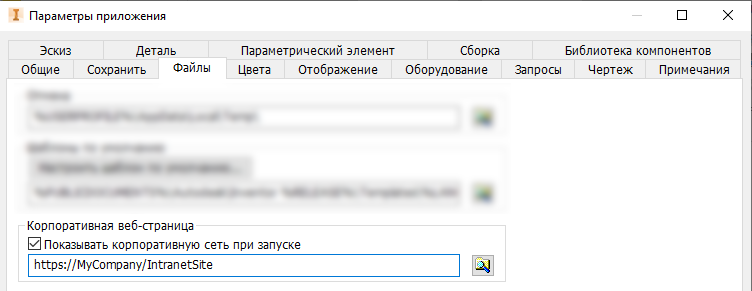 Установите флажок для замены начального экрана домашней страницы Inventor на указанную страницу "Корпоративная веб-страница".