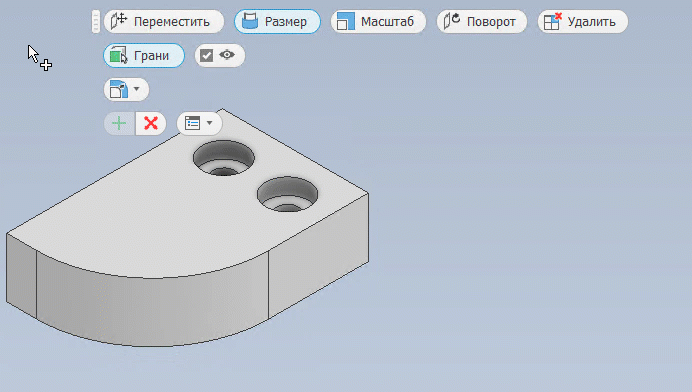 Непосредственное редактирование используется для изменения твердых тел, созданных в Inventor, а также импортированных твердотельных моделей без журнала.