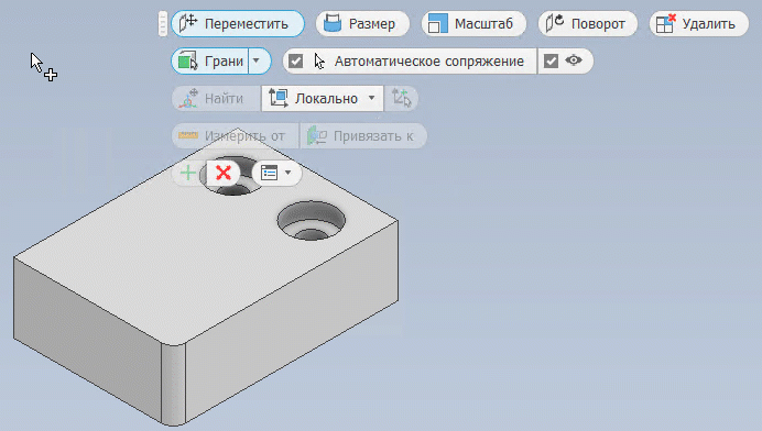 На мини-панели «Непосредственное редактирование» следует указать операцию, которую требуется выполнить, а также геометрию, в отношении которой следует применить операцию.