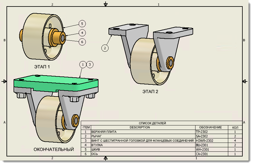 Состояние модели можно выбрать в процессе создания вида чертежа. Каждое состояние модели может содержать уникальные элементы и свойства iProperties. Вид, созданный на базе подстановочного состояния модели, отражает состояние подстановочной детали в виде чертежа.