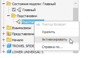 Правой кнопкой мыши щелкните подстановку, которую требуется изменить, и выберите команду Активировать. Модель будет обновлена, и в ней отобразится подстановка.