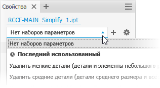 При необходимости выберите встроенный набор параметров для использования. Имеется четыре встроенных набора параметров, а также возможность создания собственных наборов. Наборы параметров присваивают значения полям на панели свойств. Любое значение можно переопределить.