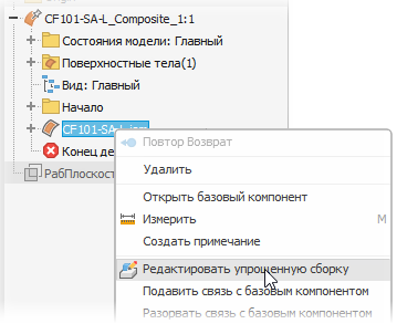 Разорвать связь: возможность разорвать связь между родительской сборкой и упрощенной деталью.