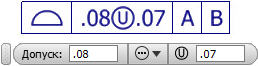 Значение допуска профиля в допуске формы и расположения является общей шириной допуска профиля. Значение, указанное после обозначения неравномерного размещения, является значением допуска, служащего для добавления материала.