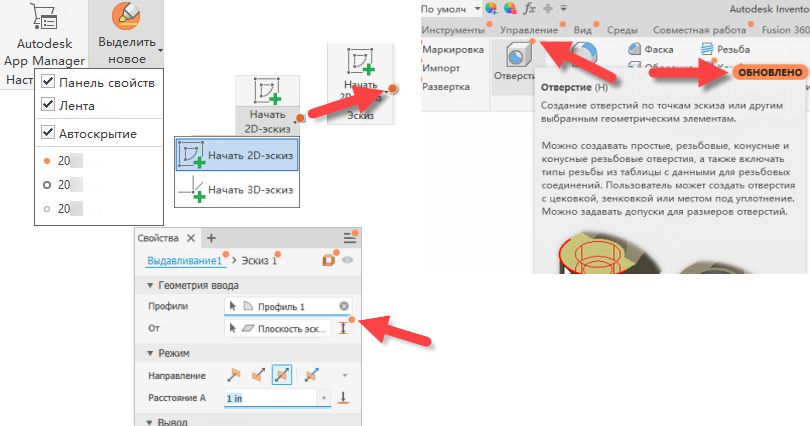 При выборе параметра ленты новые и обновленные команды помечаются значком. Значки упрощают идентификацию и изучение новых и измененных команд. Можно управлять отображением значков, а также версией и обновлением, для которых они отображаются.