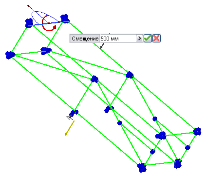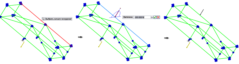 Определение зависимостей. Выберите балку или узел для определения их начальной точки. С помощью значков или диалоговых окон укажите начальную точку и значения, такие как "Величина" или "Угол в плоскости".