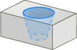 | Высверленное отверстие | ![]() | Простое отверстие с глубиной, ограниченной конической гранью | Да: примечание 2 | |