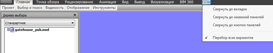 - Свернуть до кнопок панелей: лента сворачивается так, что отображаются только названия вкладок и кнопки панелей.