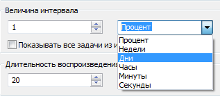 С помощью раскрывающегося списка выберите единицы, в которых задается интервал, а затем с помощью кнопок "стрелка вверх" и "стрелка вниз" увеличьте или уменьшите величину интервала.