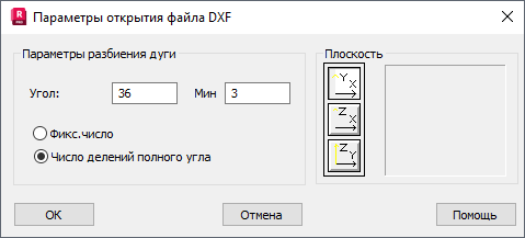 При выборе данной опции, открывается диалоговое окно "Параметры открытия файла DXF".