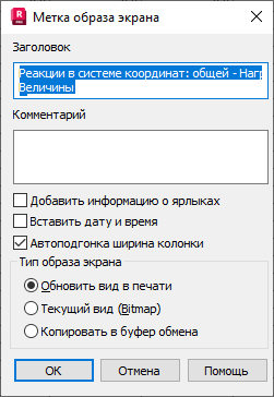 - Обновить вид перед печатью: обновление образа экрана в документации каждый раз при печати или при предварительном просмотре. В это обновление включена текущая геометрия, данные и результаты проекта.