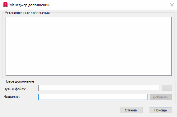 Чтобы открыть диалоговое окно "Управление дополнительной инсталляцией" выбирают команду меню Надстройки > Управление дополнительной инсталляцией. Опция используется как для инсталляции, так и для размещения дополнительно устанавливаемых программ в меню Robot.
