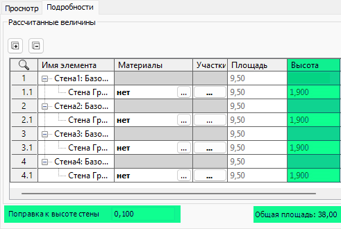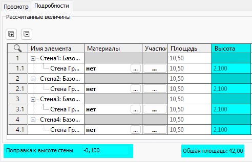 Прим.: Он применим только к поверхностям стен. Для других количественных характеристик помещения инструмент «Уменьшение высоты стен» недоступен.