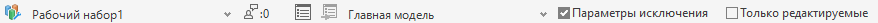 Чтобы ускорить процедуру работы с проектом, в котором организован совместный доступ, можно воспользоваться строкой состояния. Кнопка "Рабочие наборы" и раскрывающийся список "Активный рабочий набор" обеспечивают те же функциональные возможности, что и соответствующие инструменты (вкладка "Совместная работа"