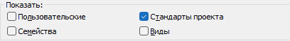 Стандарты проекта. Содержит все параметры, определенные для всего проекта (например, стили линий и штриховок). Рабочие наборы стандартов проекта нельзя переименовывать или удалять.