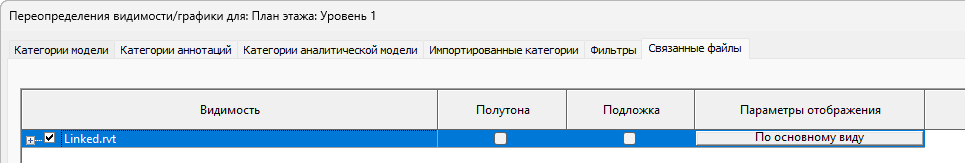 Если требуется, чтобы фильтр и другие параметры переопределения графики, примененные к виду главной модели, были также применены к вложенным и связанным моделям на этом виде, следует принять режим "По основному виду" (действующий по умолчанию).