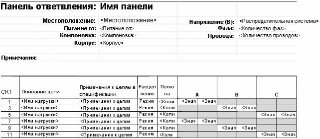 Допускается добавление текста в спецификацию панели. Также в шаблон можно вставить параметр "Примечания", в результате чего можно ввести текст примечаний и сохранить его в спецификации панели.