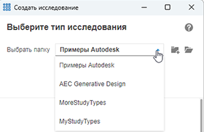 Примеры типов исследований находятся в папке «Примеры Autodesk».