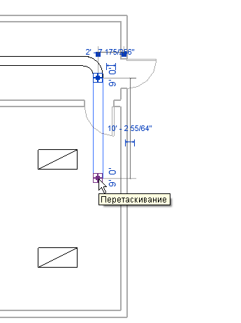 - Перетащите элемент управления для перемещения или удлинения сегмента кабельного лотка до новой конечной точки, либо для соединения с другим кабельным лотком.