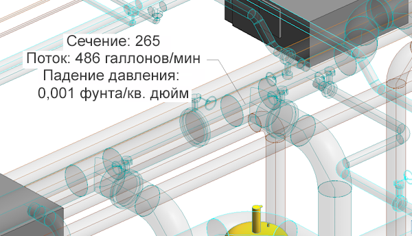 Сегменты труб аналитической модели — это субэлементы труб, соединительных деталей трубопроводов, арматуры трубопроводов, гибких труб и механического оборудования. Они представляют путь потока в трубопроводной сети. Сегменты аналитической модели для фитингов, содержащих более двух соединителей, будут иметь несколько сегментов, соединенных с точкой пересечения в фитинге. Используйте элементы управления в окне «Видимость/графика», чтобы включить видимость сегментов аналитической модели на виде. Для выбора сегмента трубы аналитической модели используйте клавишу TAB.