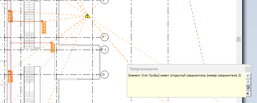 Для проверки соединений систем трубопроводов в модели перейдите на вкладку "Анализ"панель "Проверка систем"