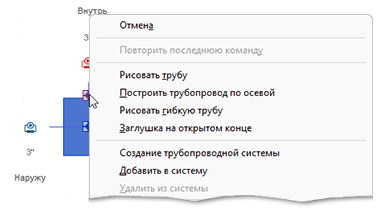 Добавление из контекстного меню. Наведите указатель мыши на соединитель трубопровода на оборудовании или семействе приборов и щелкните правой кнопкой мыши для отображения контекстного меню. Нажмите кнопку «Рисовать трубу», чтобы добавить трубу и наследовать размер и отметку соединителя. Для трубы используется тип системы, назначенный той же классификации системы, что и для соединителя. Этот метод также можно использовать на видах сечений и фасадов.