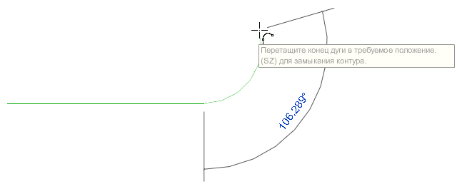 Чтобы создать дугу по центру и конечным точкам, необходимо сначала указать радиус дуги, а затем задать угол. Используя этот метод, нельзя задать дугу, большую чем 180 градусов, но можно изменить дугу после того, как она создана.