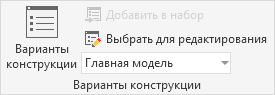 Если в раскрывающемся списке выбран вариант "Главная модель", вариант конструкции в данный момент не редактируется.