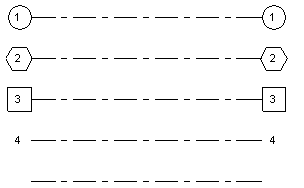 | Образец конечного сегмента | Стиль линии координационной оси или, если для центрального сегмента выбран тип «Нет» либо «Пользовательский», стиль линии конечных сегментов.