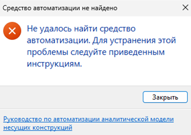 Если автоматизация быстрого доступа не находит соответствующий сценарий Dynamo (по идентификатору GUID) в указанной папке, отображается предупреждение о том, что не удалось идентифицировать инструмент автоматизации.