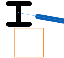 На следующей иллюстрации показана балка, расположенная со смещением относительно центра колонны. Ручка показанной на иллюстрации балки остается внутри ограничивающей рамки. Однако ограничивающая рамка невидима.