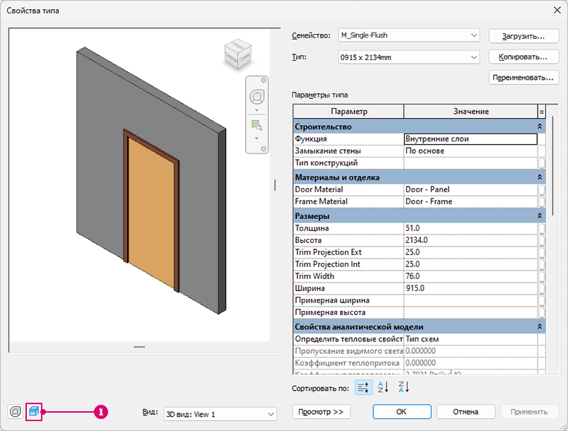 Для лучшей визуализации того, как элемент отображается в модели, примените к нему визуальный стиль в диалоговом окне «Свойства типа».