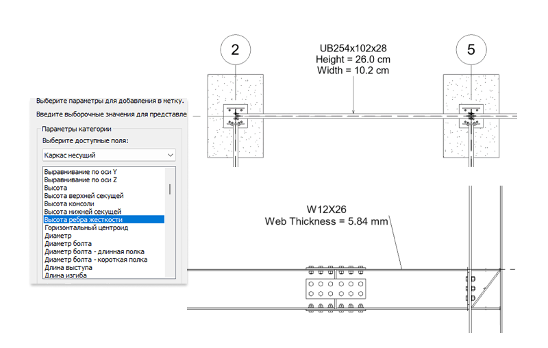 Параметры формы сечения несущей конструкции используются для адаптации меток марок несущего каркаса.