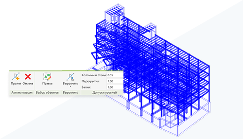 Можно быстро автоматизировать создание аналитических моделей с помощью простой команды. При этом по умолчанию выбирается вся модель несущей конструкции и доступны простые параметры настройки.
