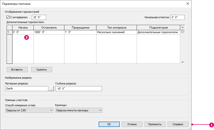 . Увеличив диалоговое окно, можно изменить дополнительные параметры горизонталей