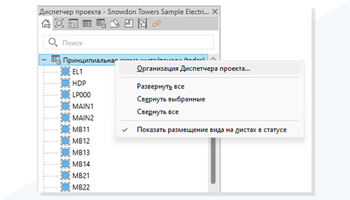 Теперь в Диспетчере проекта можно организовывать принципиальные схемы щитов/панелей с помощью операций сортировки, фильтрации или группирования.