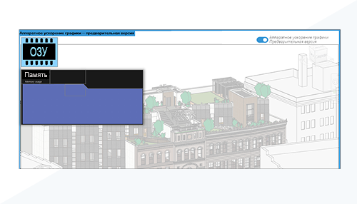 Использование оперативной памяти оптимизировано в среднем на 10 %, что улучшило отклик при одновременной работе с несколькими видами с аппаратным ускорением графики.