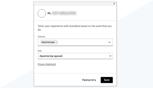 При первом открытии Revit после установки отображается диалоговое окно профиля. В нем необходимо указать род деятельности и должность, в рамках которых используется Revit.