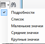 Выбор режима отображения файлов: подробное отображение, в виде списка, в виде малых, средних или крупных значков.