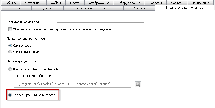 В диалоговом окне «Параметры приложения Inventor» убедитесь в том, что Inventor настроен на использование Vault для библиотек компонентов.