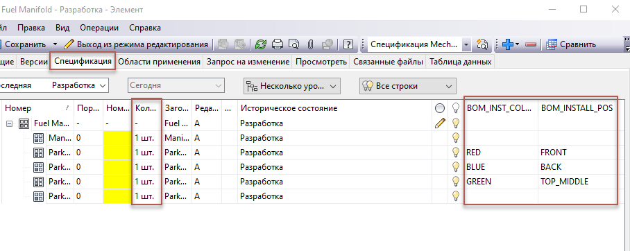 Свойства экземпляра работают так же, как и вхождение свойства элемента в спецификации Vault. Элементы с одинаковым номером детали группируются по значению свойства экземпляра.