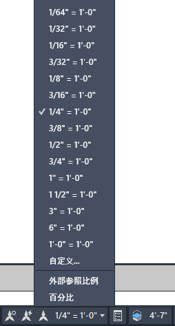 从“注释比例”弹出型菜单中选择一个注释比例,便可以指定当前的注释比例。
