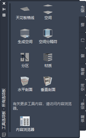 1. 依次单击“常用”选项卡 “构建”面板 “工具”下拉菜单 “设计工具”.